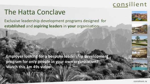Employer interested in a 2- or 3-day leadership development program for established or aspiring leaders in your own organisation? The Hatta Conclave is a residential program facilitated by up to 10 world-class executive development coaches and mentors from many parts of the globe. Click the image alongside to see a 1 minute 49 second video for a cost-effective solution.